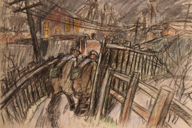 The sketch books also contain letters and personal observations about a wide range of contemporary topics. Norman often said that painting was like an itch that had to be scratched. Rarely can one town and its people have received so much attention from an individual artist with almost 5,000 drawings and watercolours, some of which will be reproduced in the forthcoming book. He worked on themes repeatedly and almost obsessively, wrestling in his mind to find a faultless composition. Many of his themes can be seen running through different seasons and times of the day and night.