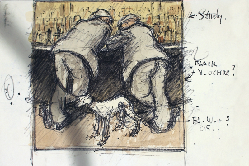The sketch books also contain letters and personal observations about a wide range of contemporary topics. Norman often said that painting was like an itch that had to be scratched. Rarely can one town and its people have received so much attention from an individual artist with almost 5,000 drawings and watercolours, some of which will be reproduced in the forthcoming book. He worked on themes repeatedly and almost obsessively, wrestling in his mind to find a faultless composition. Many of his themes can be seen running through different seasons and times of the day and night.