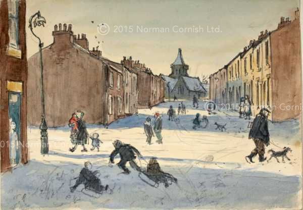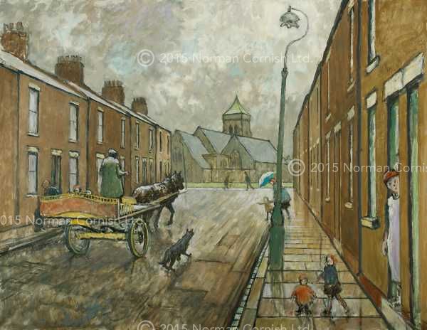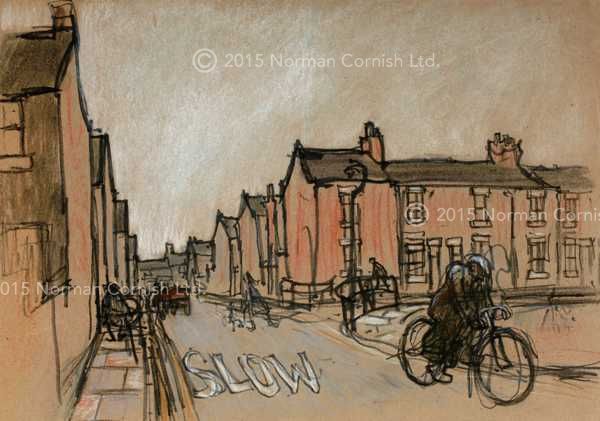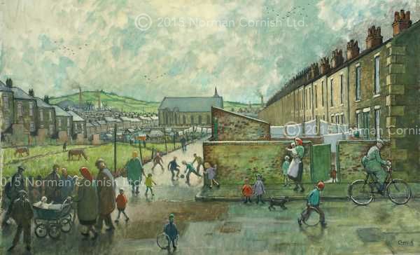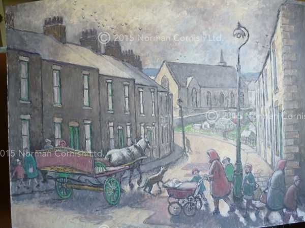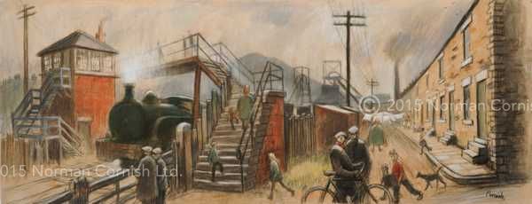 This special world of mine is constantly changing and many of the people who inhabited it are no longer with us. Many of the places that once helped to make up that world have also passed into time. The local collieries have gone too, together with the pit road. Many of the old streets, chapels and pubs are no longer more. Many of the ordinary but fascinating people who frequented these places are gone. However, in my memory and I hope in my drawings, they live on ” Norman Cornish