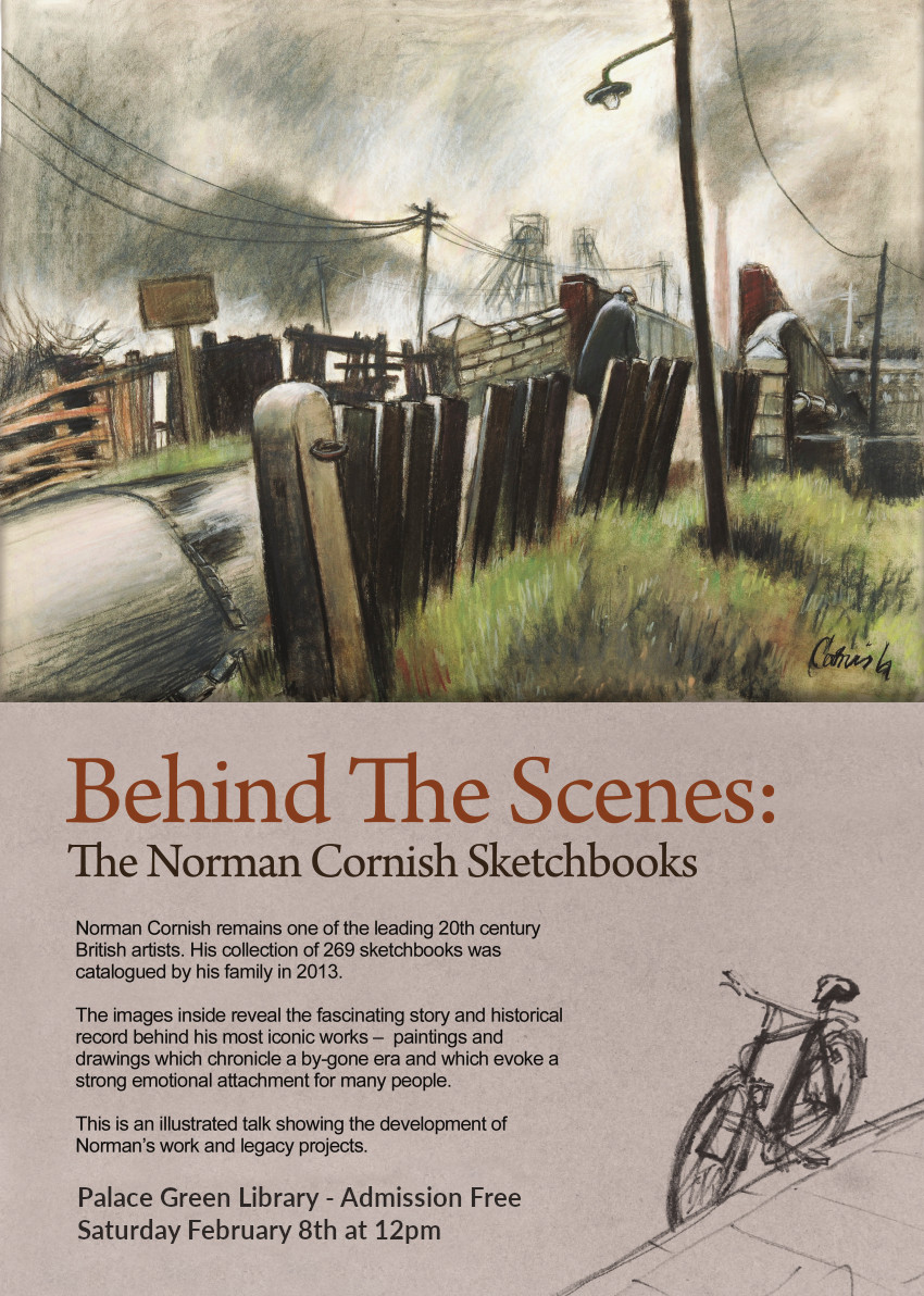 An illustrated lecture. Behind The Scenes: The Norman Cornish Sketchbooks at Palace Green Library, Durham on Saturday February 8th at 12pm.