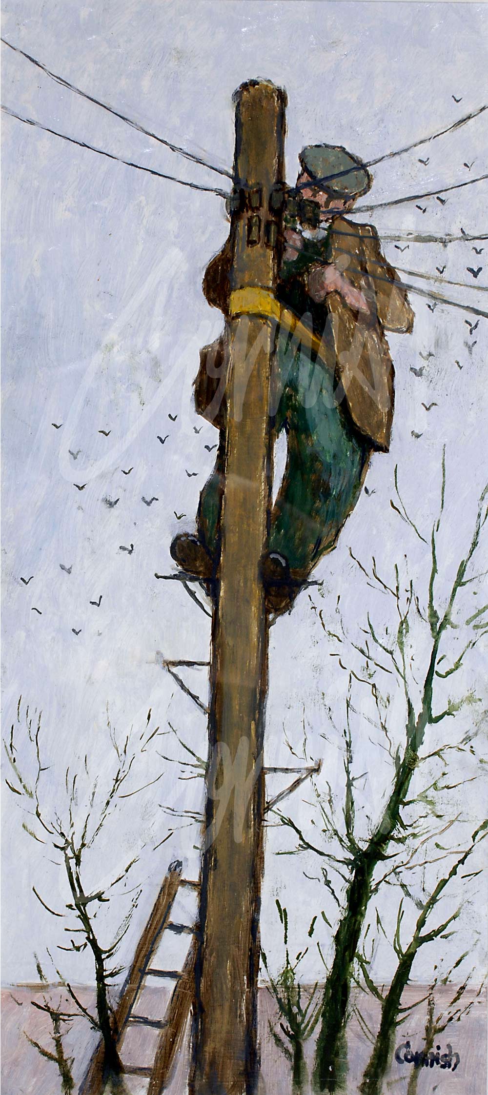 Cornish belonged to a generation denied the opportunity of continuing with education from an early age. Working class artists were deemed to be ‘Sunday Painters’ and there was an assumption of naivety of such artists by the Arts establishment, because of their occupation, as well as implied political associations. He was refused financial support to attend the Slade School of Fine Art in London, and subsequently he had to overcome prejudice and resentment by some students and some colleagues when he taught part-time at Sunderland Art College - because in their eyes - he lacked an academic background. Despite the obstacles to success, a rare talent emerged in the post war years and a burgeoning national reputation.