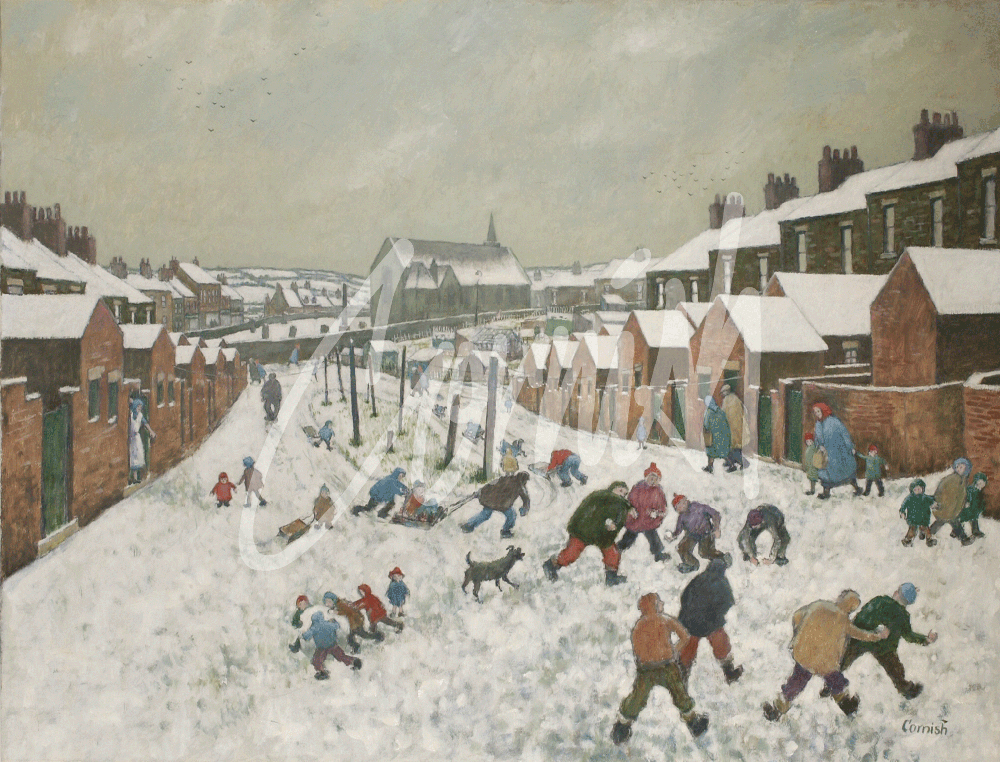 One of Cornish’s other significant influences was Pieter Breugel the Elder (1525-1569) and this is evidenced in this scene which captures children at play in the snow and others going about their daily lives. This oil on canvas is a very carefully constructed composition which brings together so many elements, not least the 42 individual children and adults, carefully placed to appear to interact naturally. An excellent example of inspiration for Cornish from simple everyday activity.