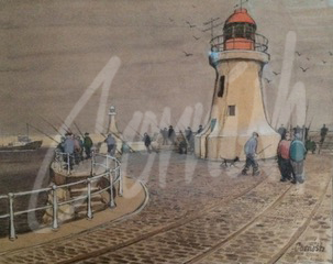 As a frequent visitor to Newcastle it was inevitable that the sights and sounds of Tyneside would begin to exert some influence on his choice of subject material. His first painting of people fishing at South Shields appeared in the Stone Gallery exhibition of 1967 which was shortly after his step towards becoming a professional artist.