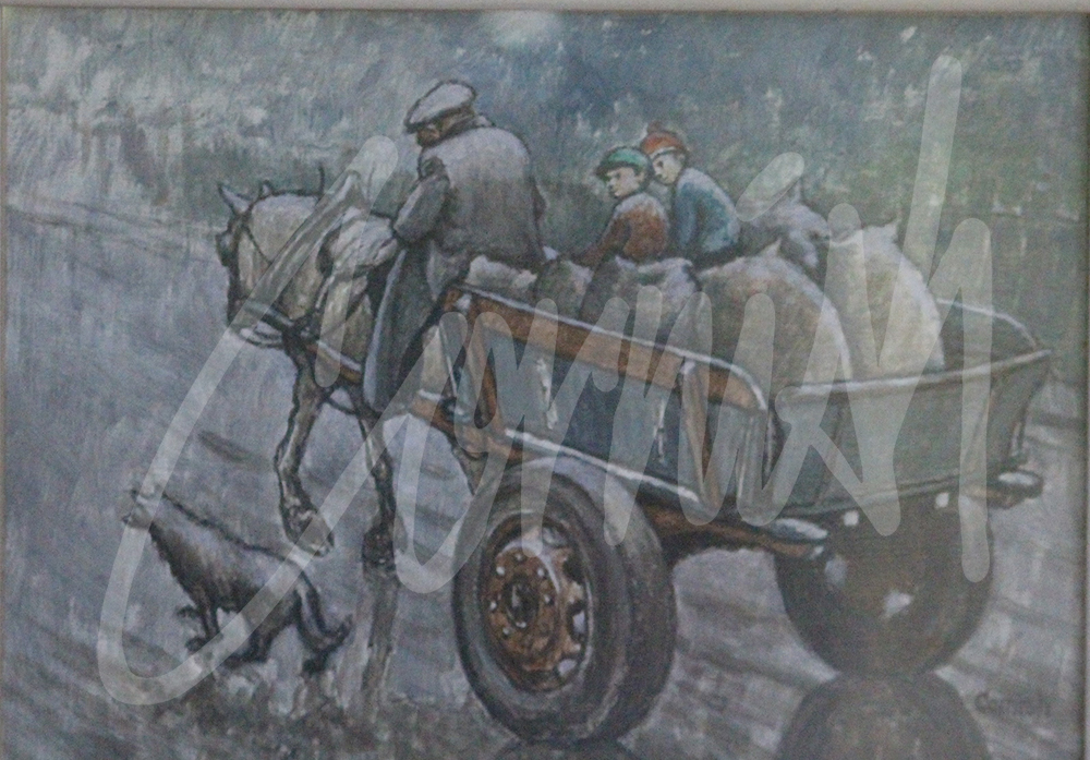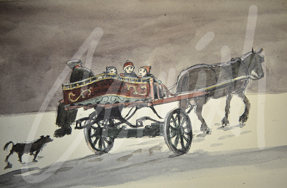He had an outstanding ability to quickly observe and record people in the most unlikely situations and the horse and carts seen in and around Spennymoor provide an excellent example. Sometimes they appear as subjects in their own right and on other occasions they are placed within street scenes as part of the natural inter-action between the subject and other people going about their daily lives at the same time.