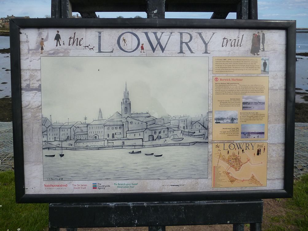 The initial research began with enquiries to ‘Visit Yorkshire’ regarding The Hockney Trail, but the Hockney Trail concept was rejected because it entailed access by car only. A visit was arranged to The Lowry Trail in Berwick upon Tweed, which was launched in 2014, to coincide with an exhibition of Lowry’s works based upon his many visits to Berwick. An interesting route, however the 24 locations took over three hours to visit while walking.
