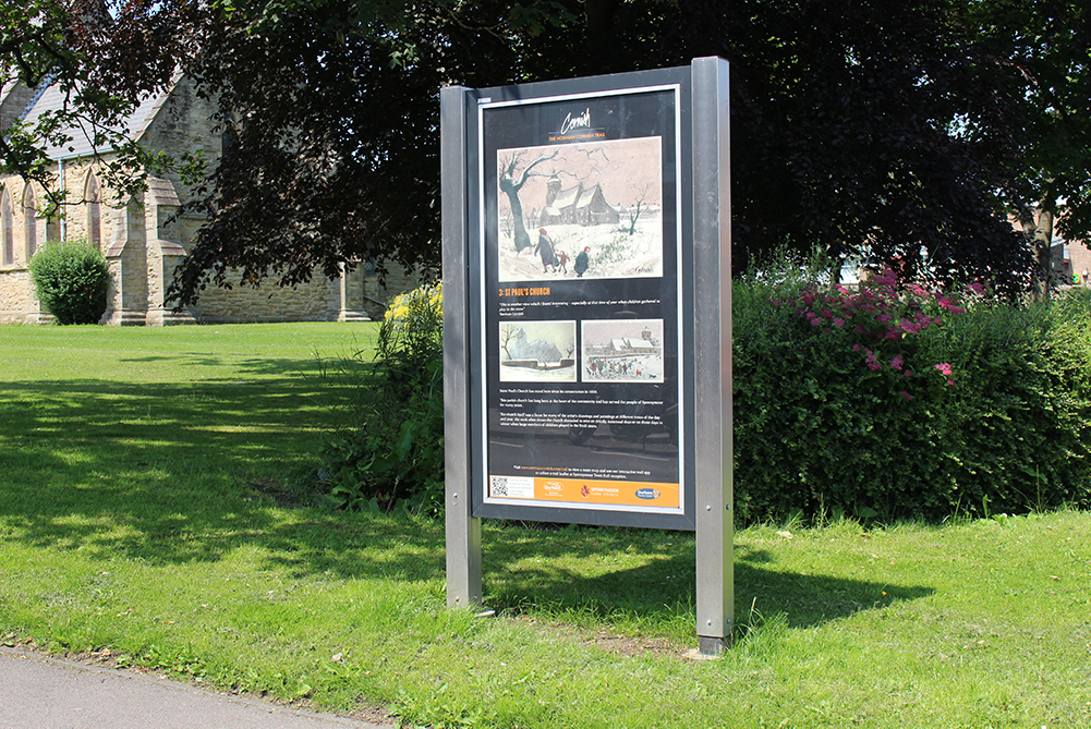 The Norman Cornish Trail in Spennymoor opened in April 2019 to launch his Centenary Year. Over 15,000 visitors have enjoyed this fascinating walk of 1.5 miles visiting 10 of the famous locations which inspired some of his most iconic paintings. The information panels at each location include an audio version of the content which may be accessed via a QR code at each point of interest.