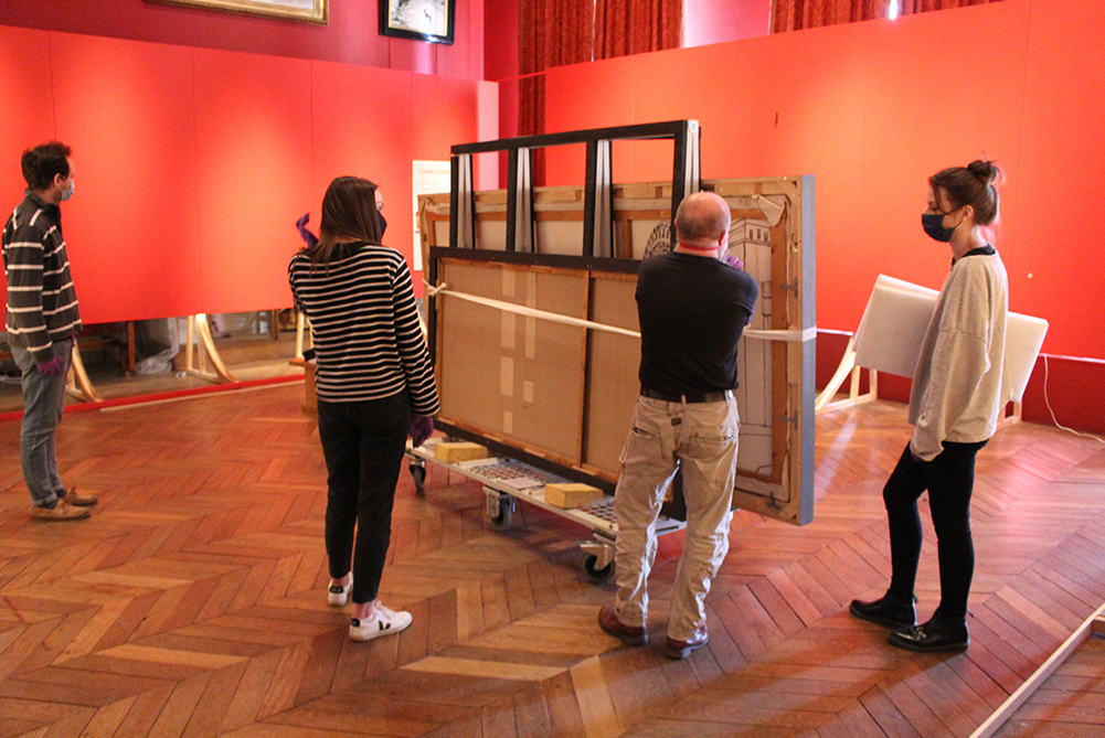 We were delighted with the public response to the celebrations and it was with mixed feelings that the retrospective at The Bowes Museum was finally de-installed last week and all of the paintings returned to their owners as part of a huge logistical exercise. The various tasks lasted six days including taking down works with meticulous care, ‘condition reports’ for each item, packing, labelling and finally delivery by Bradleys from Darlington, who are specialists in handling works of art and antiques. The delivery schedule alone has taken three days to return works to owners from all parts of the UK.
