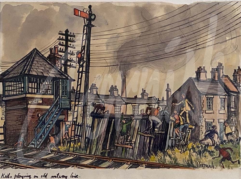 The redundant rail lines were features within themselves and to the unwary a ‘trip hazard.’ Alison Servant (nee Veitch) was one such casualty. During a visit in 1962 to ‘play out’ with Ann Cornish Alison recalls tripping over one of the rail lines at the end of Bishops Clos Street. Sarah Cornish took Alison to see the local Doctor to have her head stitched and she still has the scar on her forehead! Her abiding memory though is of sitting listening to Ann’s dad playing his banjo to help cheer her up following the unfortunate accident. A few weeks later there was a special treat for the girls. Ann’s dad took Alison and Ann to visit the Stone Gallery in Newcastle. Alison recalls being introduced to an old man dressed in black sitting in a corner – LS Lowry. To be continued …….