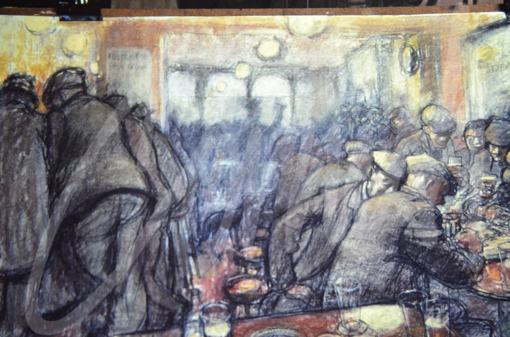 In 1989 the Busy Bar was purchased by Scottish and Newcastle Breweries for their boardroom. In 2007 the painting was donated to the Permanent Collection at Northumbria University for the ‘public benefit’ at future exhibitions.