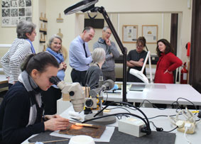 Members of the Cornish family during a recent visit to the Conservation Department at Northumbria University.
