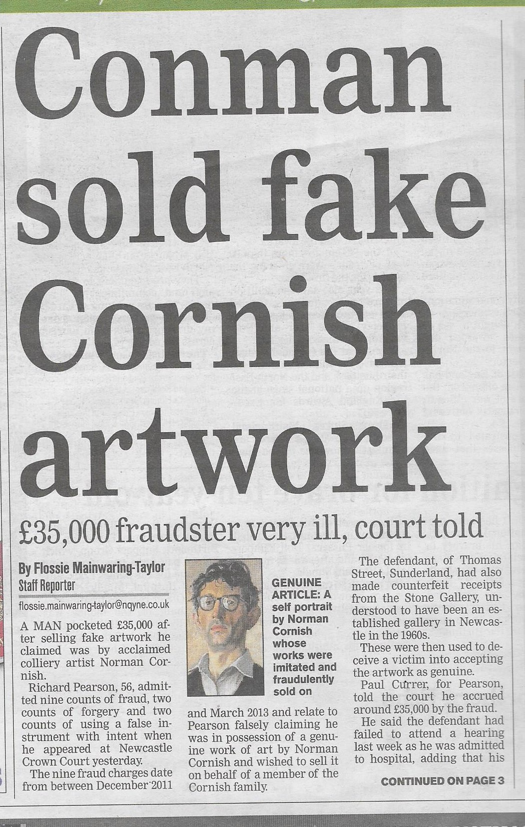 A 56 year old man has plead guilty to nine charges of fraud after selling art purportedly by Norman Cornish.