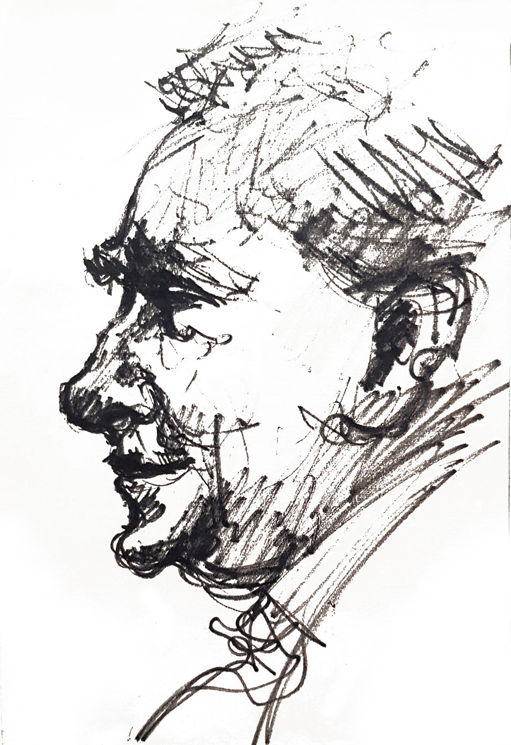 Image: A drawing (Flo-master pen) by Norman Cornish of L.S. Lowry at The Stone Gallery, Newcastle, on October 30th 1964.