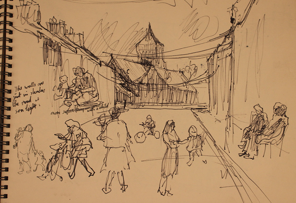 It was hardly surprising that the celebrations in 1977, which were within a short distance from the family home in Whitworth Terrace, were visited by Cornish to record another and very different piece of social history. Two photographs were taken of local street parties and two drawings in one of his sketchbooks quickly recorded the atmosphere and community spirit in Edward Street. This local street was one of his favourite subjects and always offered new and interesting situations whatever the time of day or season of the year.