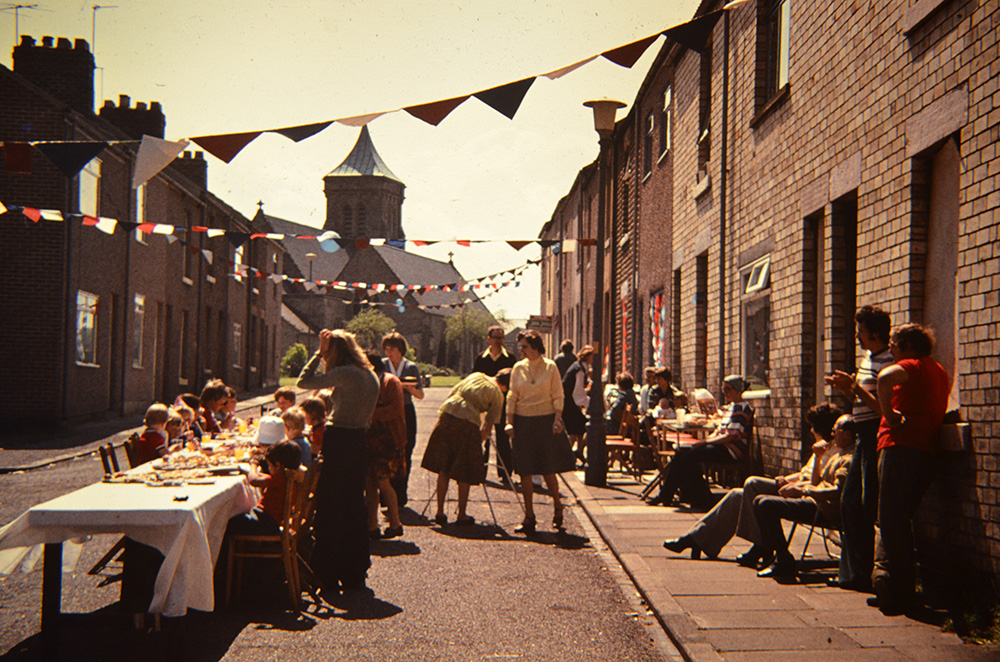 In 1977 the Queen’s Silver Jubilee was celebrated on July 14th during a programme of extensive visits throughout the UK. Ten million people took part in street parties with the traditional bunting and flags.