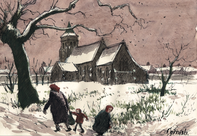 From the church, head along St Paul’s Street and take the first street on the right. You will now be walking down Edward Street – one which the artist painted often. At the trail board site, turn and look back and see how the street really is ‘crowned’ by the church.