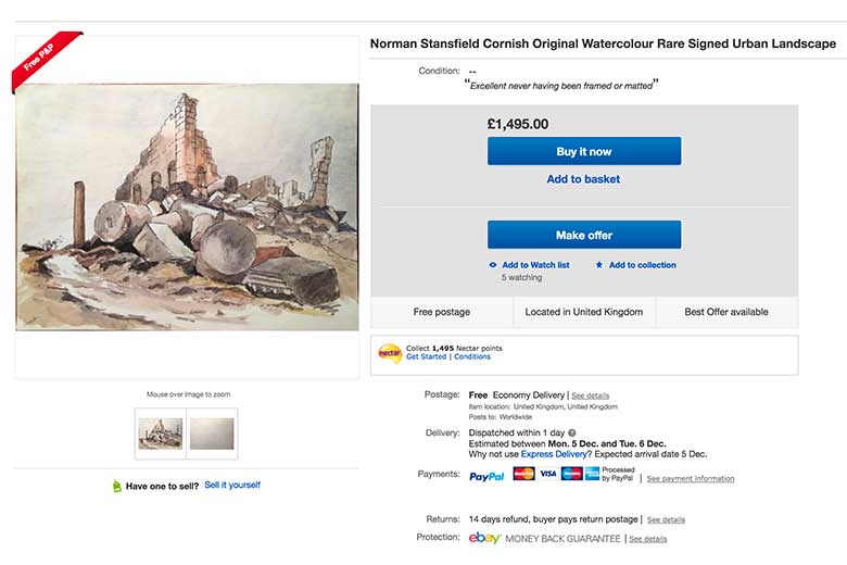 We can confirm that this piece cannot be attributed to Norman Cornish and as a general rule buyers are advised against buying original artwork via the internet.